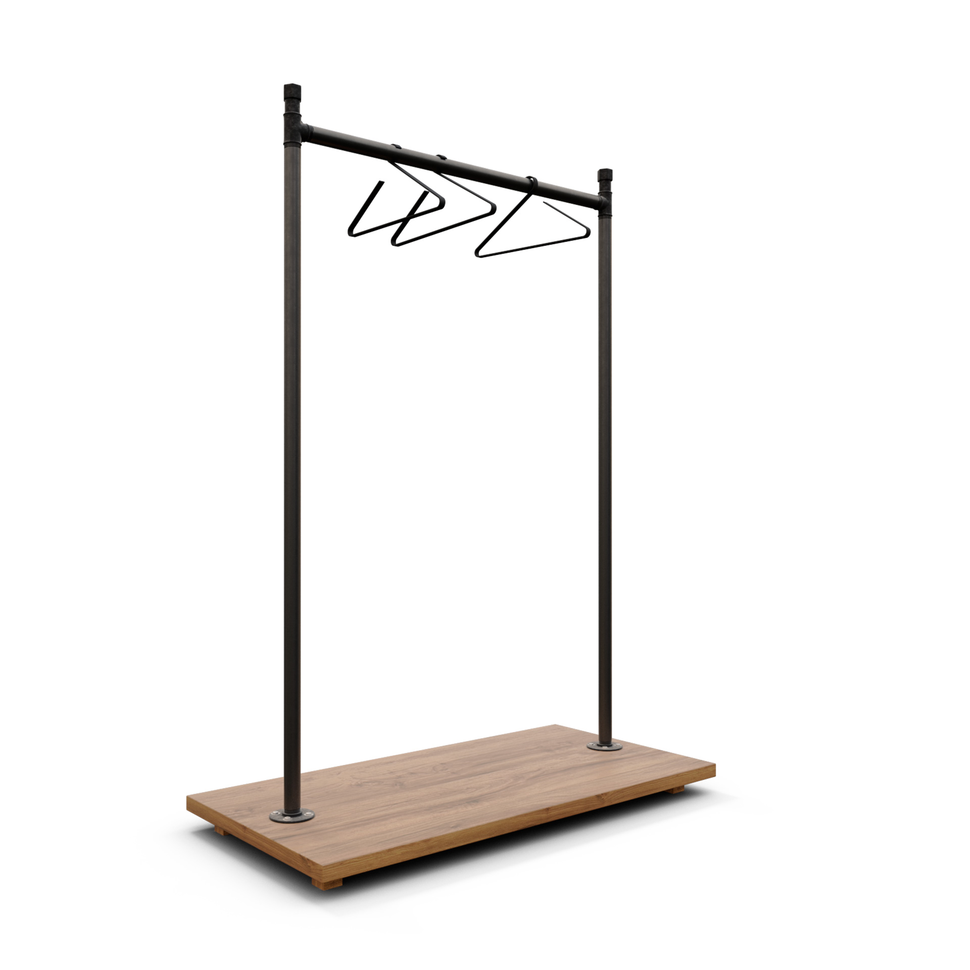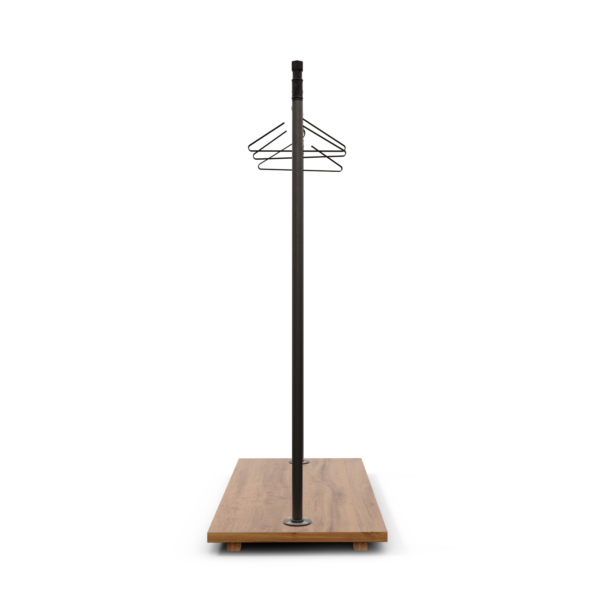 De igual modo al fabricar a medida, si necesitas un perchero fijo o un colgador de ropa tipo burro, podemos suprimir las bases y añadir unas pletinas para anclarlo al suelo y que se vea visualmente más ligero y elegante.