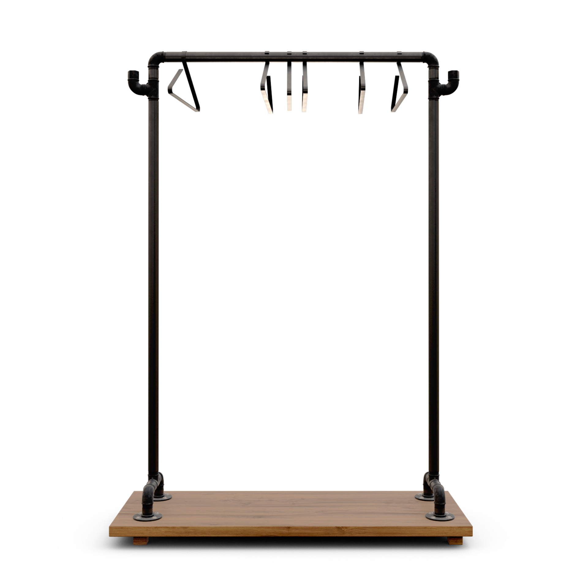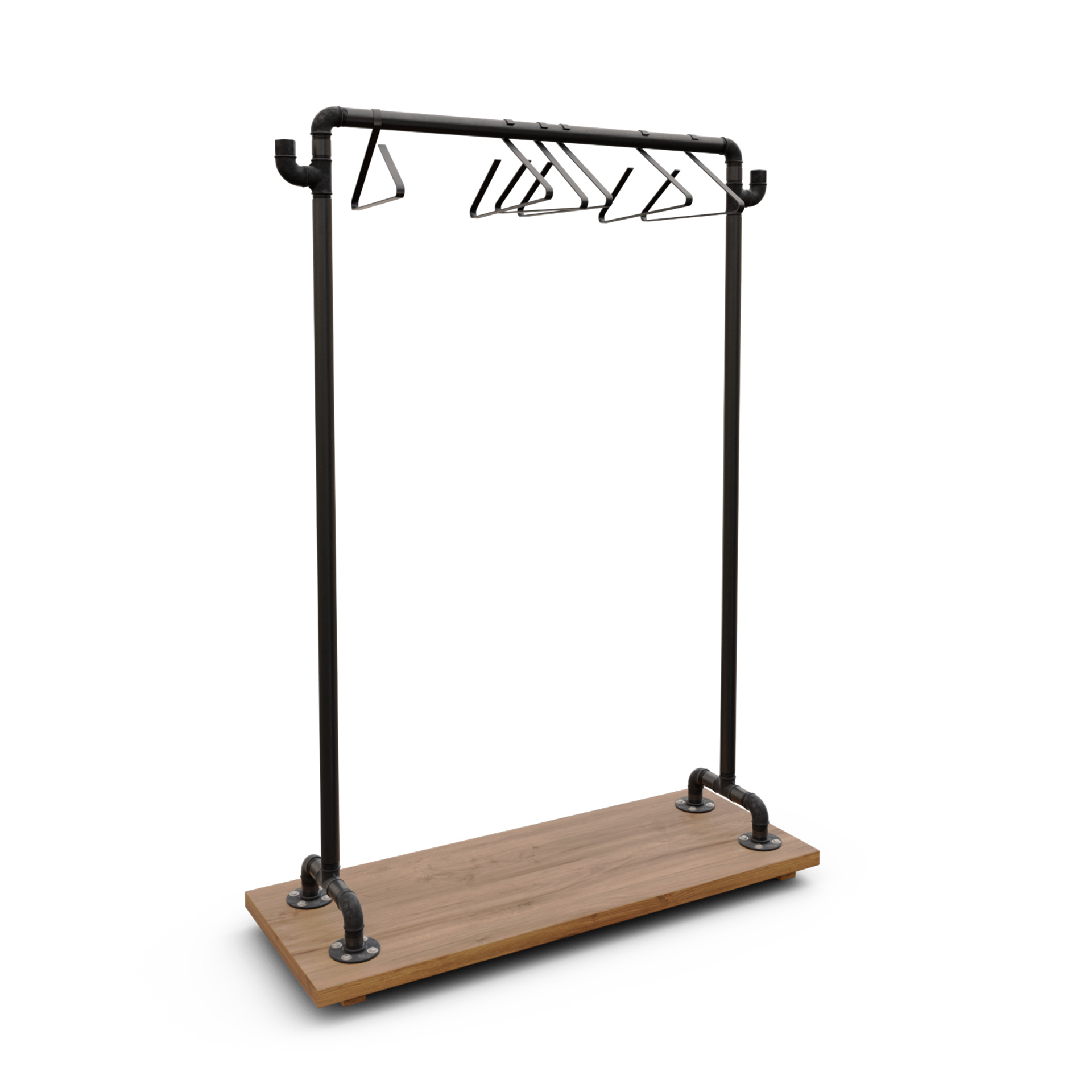 De igual modo al fabricar a medida, si necesitas un perchero fijo o un colgador de ropa tipo burro, podemos suprimir las bases y añadir unas pletinas para anclarlo al suelo y que se vea visualmente más ligero y elegante.