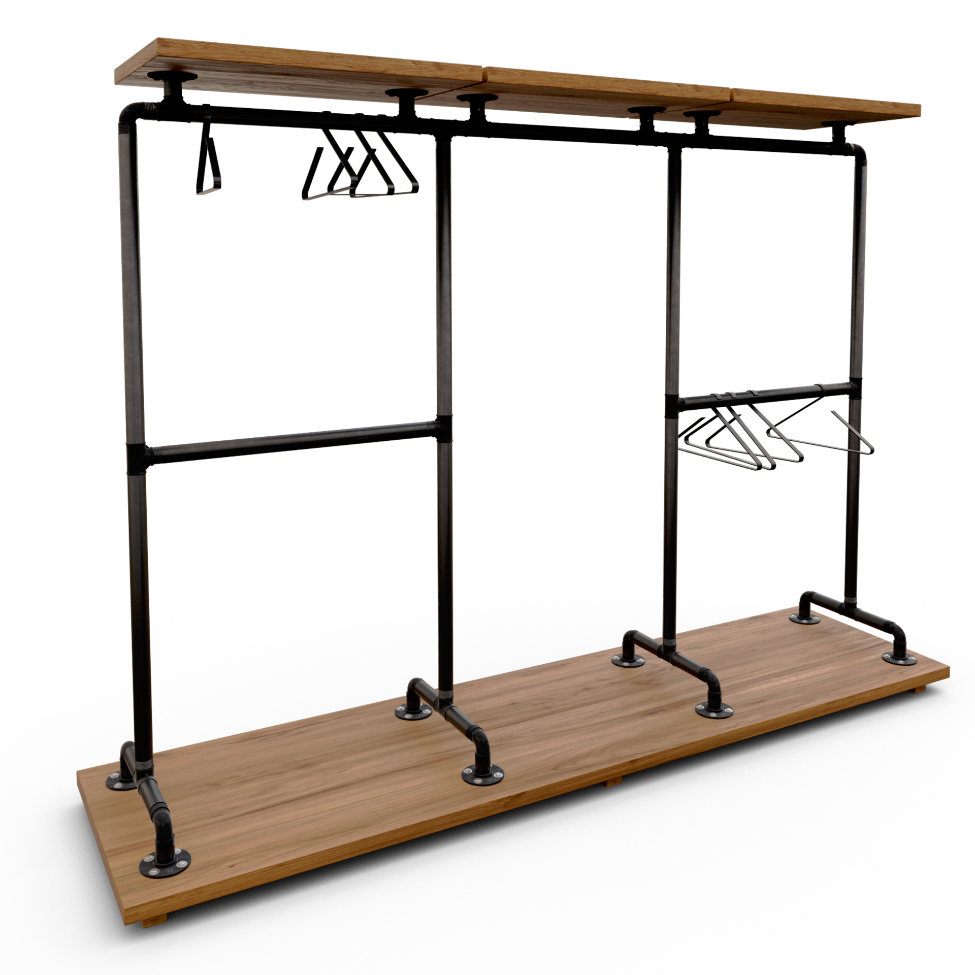 De igual modo al fabricar a medida, si necesitas un perchero fijo o un colgador de ropa tipo burro, podemos suprimir las bases y añadir unas pletinas para anclarlo al suelo y que se vea visualmente más ligero y elegante.