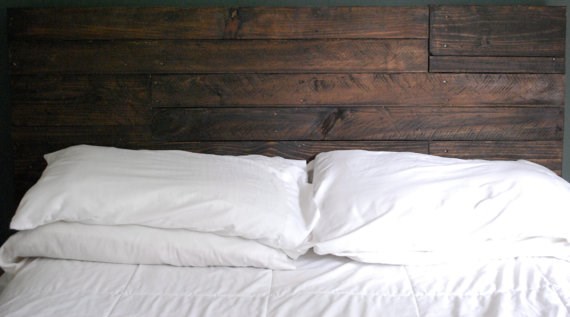 Lo fabricamos a medida para tu cama: adaptamos la anchura exacta (individual, matrimonio, queen, king o formato especial), la altura visible, el grosor del panel, el tipo de canto y la geometría de las tablas (alineadas limpias o con pequeñas variaciones de nivel y longitud, como en la imagen). El acabado puede ser en tinte oscuro o mas claro y cálido, nogal ahumado, negro tostado, natural mate o blanco/roto decapado. Todos los acabados se realizan con tintes al agua de baja emisión y barniz mate al agua para un tacto agradable, sedoso y fácil mantenimiento.