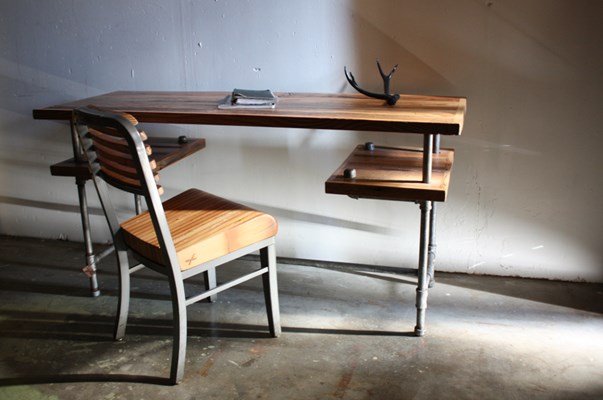 Escritorio de madera maciza fabricado en España. Estructura metálica de tubo de hierro de 1 pulgada que aporta a la pieza inspiracion industrial. La tapa de maderase ensambla y estabiliza para resistir el uso diario sin deformaciones y ofrece un tacto sedoso con acabado mate al agua de baja emisión. El diseño en voladizo permite incorporar balda auxiliar (teclado, bloc, periféricos) y pasacables ocultos para mantener la superficie despejada. Lo fabricamos a medida para que se adapte a tu espacio, equipo y rutina de trabajo.