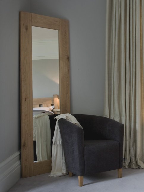 Espejo artesanal fabricado a mano en España. Marco macizo de lamas anchas y líneas limpias, perfecto para aportar luz y amplitud manteniendo la calidez de la madera. El bastidor está estabilizado para evitar alabeos y el cristal ofrece reflexión nítida. Puede colgarse en vertical u horizontal con anclaje oculto o usarse apoyado como espejo de cuerpo entero.