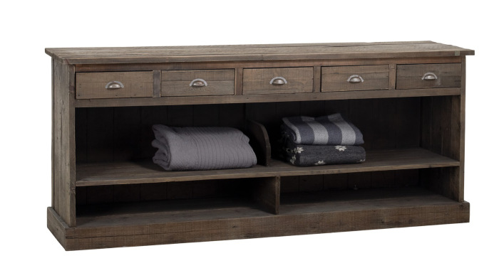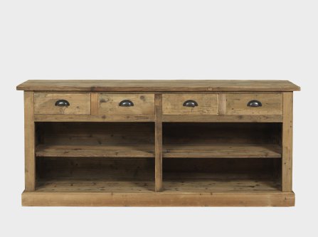 Artesanalmente fabricado en España con madera ecológica y sostenible, este mostrador ofrece un diseño versátil con múltiples cajones y estantes abiertos. Su acabado rústico y la fabricación a medida lo convierten en una pieza ideal tanto para organizar como para dar un toque cálido y natural al espacio.