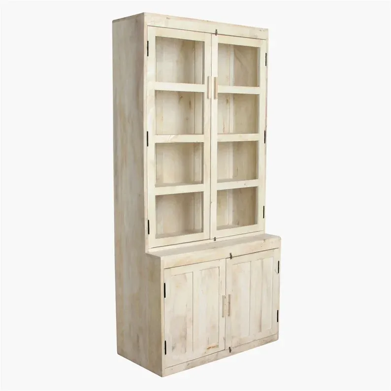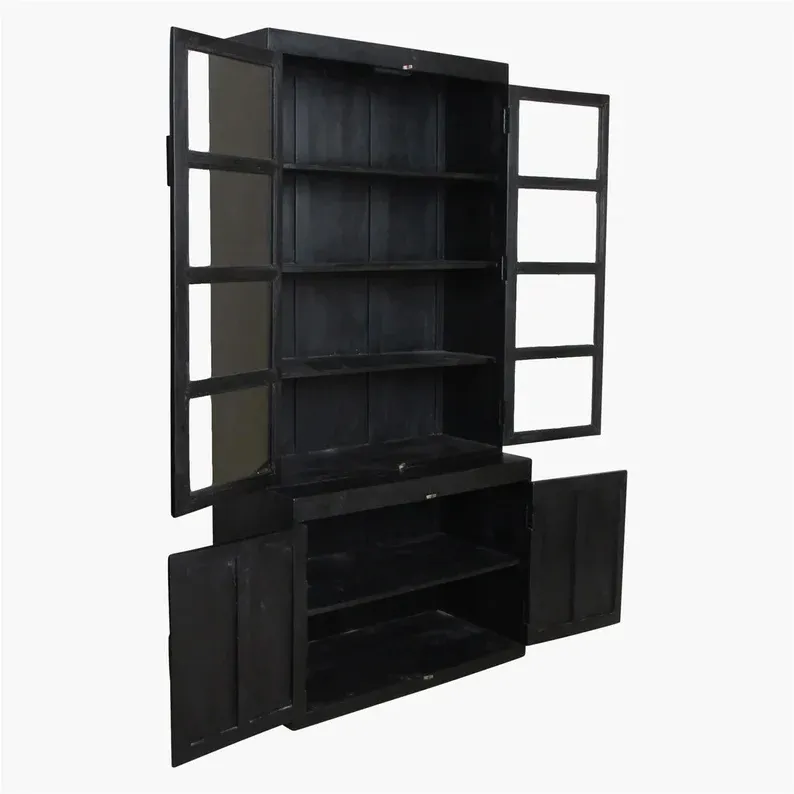 Esta vitrina artesanal fabricada a mano combina funcionalidad, durabilidad y una estética atemporal. La estructura en madera natural maciza se ensambla y estabiliza para soportar el uso diario.